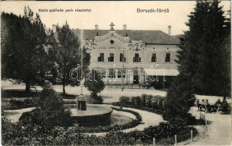 1915 Borszék, Borsec; Mélik szálloda, park / hotel and park https://www.darabanth.com/de/502-Fernauktion/502.0/Ansichtskarten/Siebenburgen~3000002/1915-Borszek-Borsec-Melik-szalloda-park-hotel-and-park~II3412499