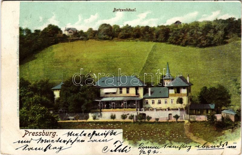 1901 Pozsony, Pressburg, Bratislava; Batzenhäusl / Bimbóház / villa an... https://www.darabanth.com/de/502-Fernauktion/502.0/Ansichtskarten/Slowakei~3000003/1901-Pozsony-Pressburg-Bratislava-Batzenhausl-Bimbohaz-villa-and-restaurant~II3416702