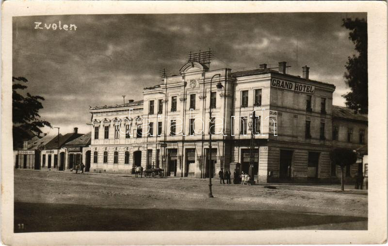 1936 Zólyom, Zvolen; Grand Hotel szálloda, étterem és kávéház, A. Vogl... https://www.darabanth.com/de/502-Fernauktion/502.0/Ansichtskarten/Slowakei~3000003/1936-Zolyom-Zvolen-Grand-Hotel-szalloda-etterem-es-kavehaz-A-Voglhut-es-fia-uzlete-hotel-~II3417399