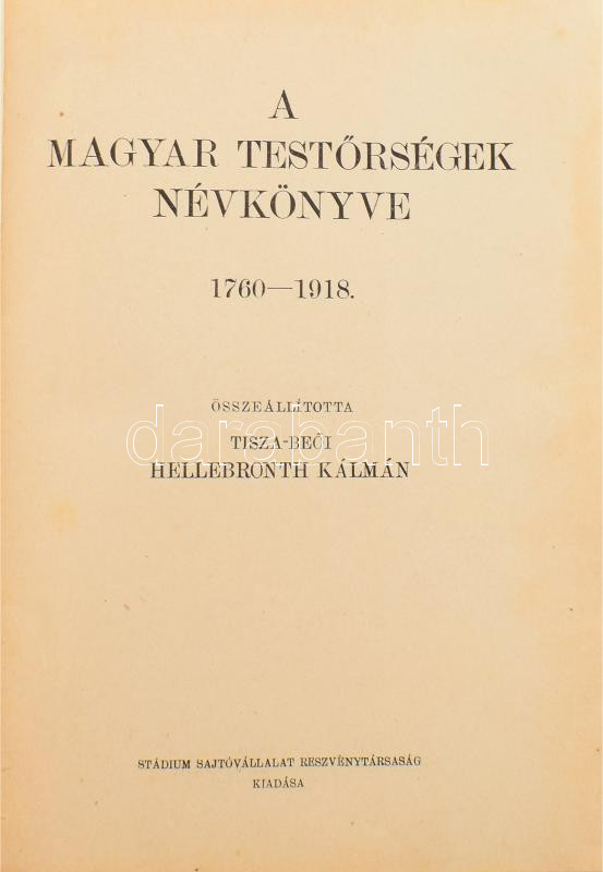 Hellebronth Kálmán, tisza-beői: A magyar testőrségek névkönyve 1760-19... https://www.darabanth.com/de/502-Fernauktion/502.0/Bucher/Bucher-Militaria~2500005/Hellebronth-Kalman-tisza-beoi-A-magyar-testorsegek-nevkonyve-1760-1918-Osszeallitotta--Bp-~II3418115