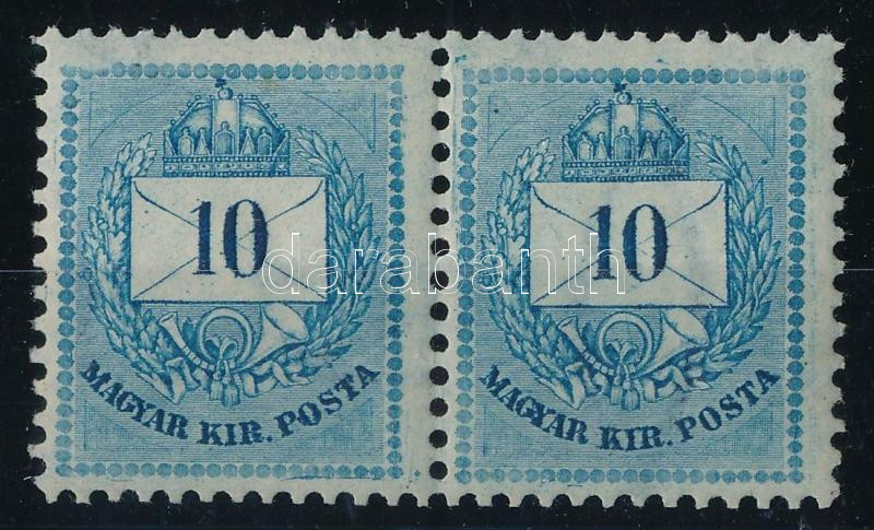 Beschreibung: 1881 Színesszámú 10kr II. lemez, a bal oldali bélyegen hiányos a gyöngysor a bal felső sarokban, karcok, vésetjavítások 12 : 11 3/4 fogazással