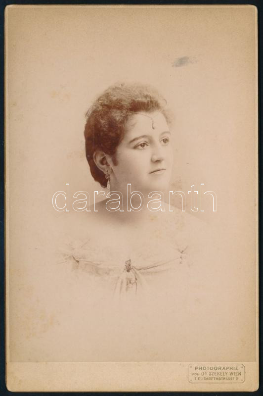 cca 1900 Czullik Inez, Czullik Ágost, a Liechtenstein hercegi kertek igazgatója lányának fotója, keményhátú fotó Székely bécsi műterméből, 16,5×10,5 cm