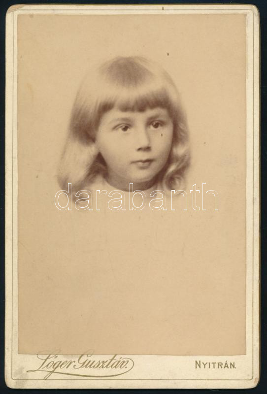 cca 1900 Kislány művészi portréja, keményhátú fotó Lőger Gusztáv nyitr... https://www.darabanth.com/de/502-Fernauktion/502.0/Fotografie/Foto~3000103/cca-1900-Kislany-muveszi-portreja-kemenyhatu-foto-Loger-Gusztav-nyitrai-mutermebol-16-5x10-5-cm~II3415414