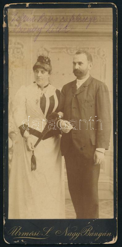 cca 1900 Zoltán Lajos és felesége Szendy Lilla, keményhátú fotó ürmösi... https://www.darabanth.com/de/502-Fernauktion/502.0/Fotografie/Foto~3000103/cca-1900-Zoltan-Lajos-es-felesege-Szendy-Lilla-kemenyhatu-foto-urmosi-nagybanyai-mutermebol-~II3415953