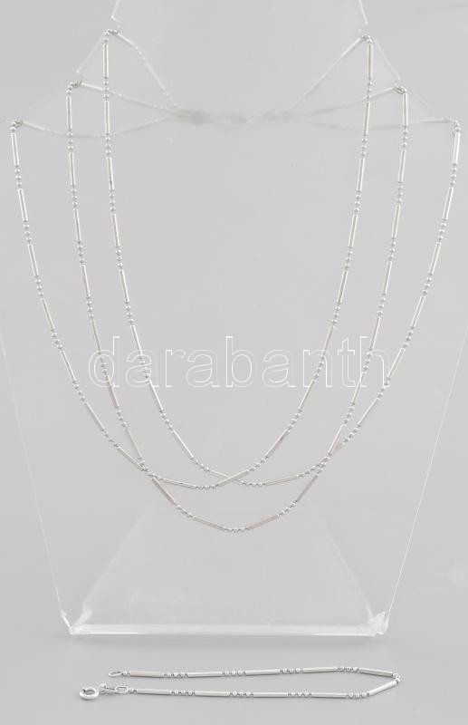 Beschreibung: Ezüst (Ag) háromszálas golyós-pálcikás nyaklánc h: 40cm + egyszálas karkötő h: 18cm, jelzett, nettó 11,3g