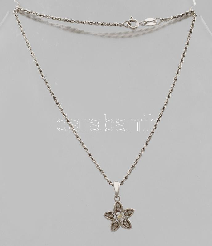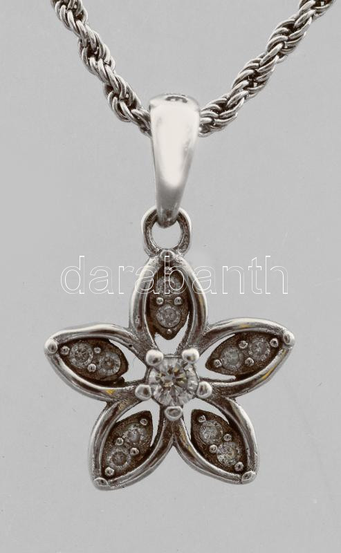 Beschreibung: Ezüst (Ag) venezianer nyaklánc h. 41cm, köves virág medállal, jelzett, bruttó 4,1g
