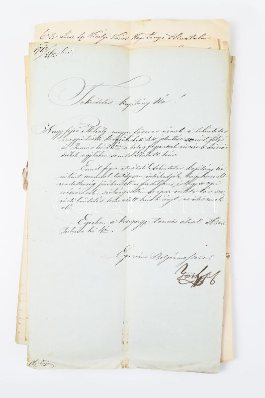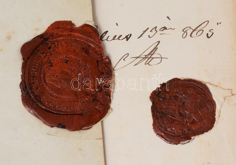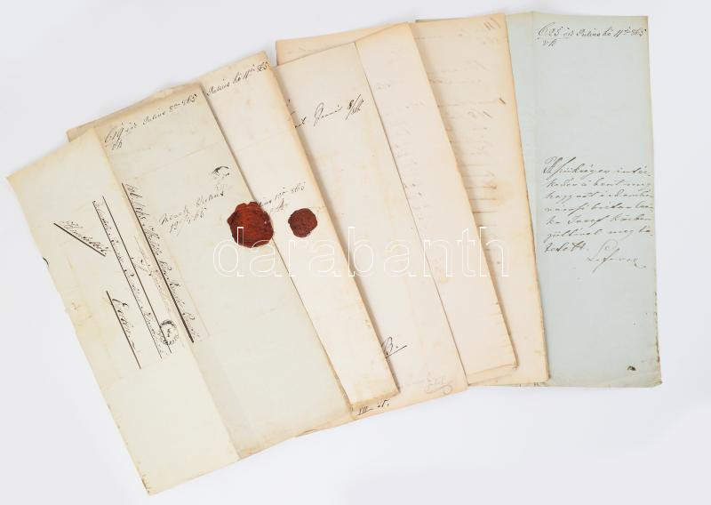 1865 Török Sándor (1822-1894) országgyűlési képviselő, alispán; Rózsa Károly (1794-1871) főbíró, stb. által aláírt 6 db rendőrségi irat Miskolc és Eger városából, viaszpecsétekkel