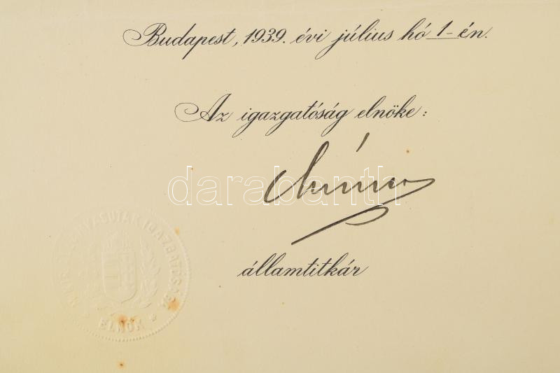ca 1930-1940 Vasutas okmányok 10 db, MÁV elnökök, közte Imrédy Kálmán MÁV igazgatósági elnök, Imrédy Béla miniszterelnök öccsének hivatalos levele saját kezű aláírásával, fejléces papíron, szárazbélyegzővel