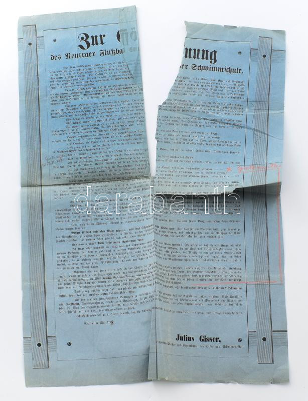 1883 Nyitrai uszodai hirdetmény, hajtott, szakadt, 47x30 cm https://www.darabanth.com/de/502-Fernauktion/502.0/Kunst-Dokumente-andere-Sammelgebiete/Drucksachen~3000109/1883-Nyitrai-uszodai-hirdetmeny-hajtott-szakadt-47x30-cm~II3412299