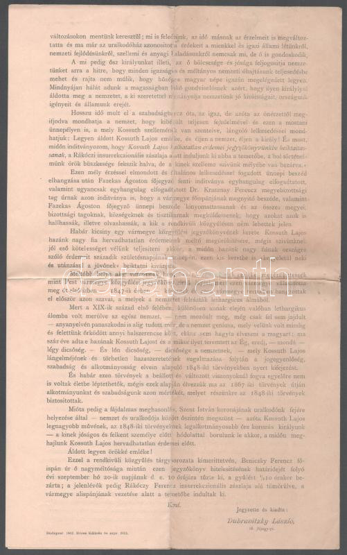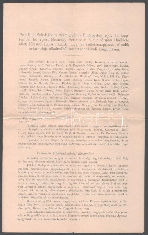 1902 Kossuth Lajos születésnapjának századik évfordulója alkalmából ta... https://www.darabanth.com/de/502-Fernauktion/502.0/Kunst-Dokumente-andere-Sammelgebiete/Drucksachen~3000109/1902-Kossuth-Lajos-szuletesnapjanak-szazadik-evforduloja-alkalmabol-tartott-rendkivuli-kozgyules~II3417971