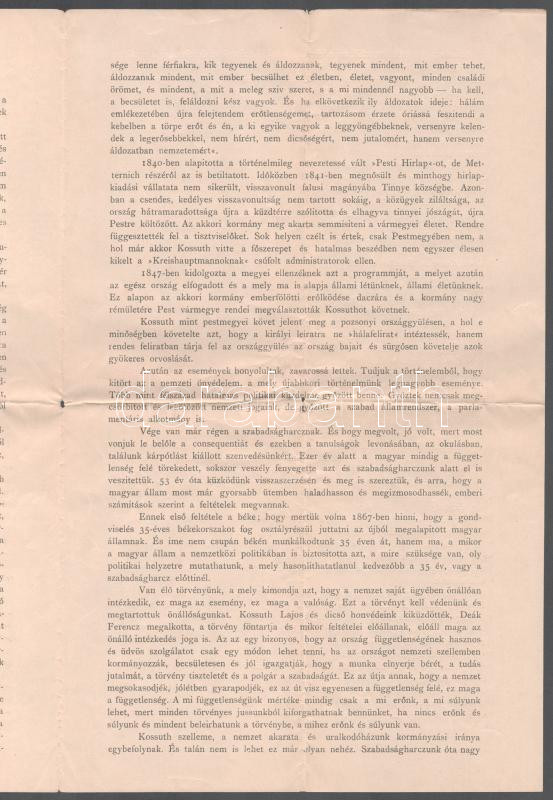 Beschreibung: 1902 Kossuth Lajos születésnapjának századik évfordulója alkalmából tartott rendkívüli közgyűlés beszámolója