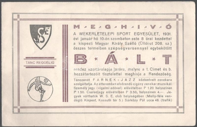 1931 Meghívó a Wekerletelepi Sport Egyesület szépségversennyel egybekö... https://www.darabanth.com/de/502-Fernauktion/502.0/Kunst-Dokumente-andere-Sammelgebiete/Drucksachen~3000109/1931-Meghivo-a-Wekerletelepi-Sport-Egyesulet-szepsegversennyel-egybekotott-baljara-a-rendezok~II3417225