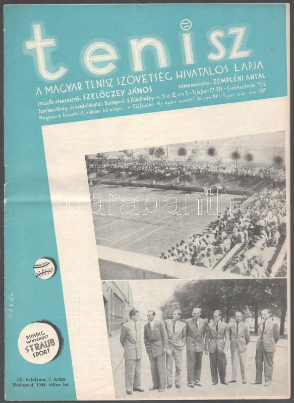 1944 Bp., Tenisz - a Magyar Tenisz Szövetség Hivatalos Lapja IX. évfol... https://www.darabanth.com/de/502-Fernauktion/502.0/Kunst-Dokumente-andere-Sammelgebiete/Drucksachen~3000109/1944-Bp-Tenisz-a-Magyar-Tenisz-Szovetseg-Hivatalos-Lapja-IX-evfolyam-7-szam-hajtott~II3415684
