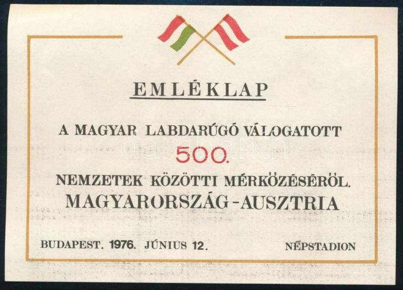 1976 emléklap a magyar labdarúgó válogatott 500. mérkőzéséről https://www.darabanth.com/de/502-Fernauktion/502.0/Kunst-Dokumente-andere-Sammelgebiete/Drucksachen~3000109/1976-emleklap-a-magyar-labdarugo-valogatott-500-merkozeserol~II3413506