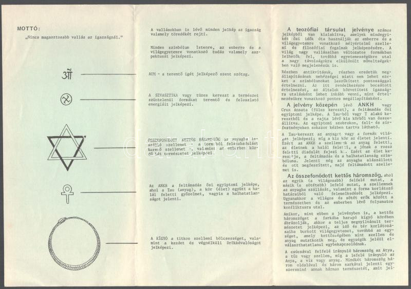 Beschreibung: A Teozófiai Társulat jelvénye, ismertető prospektus