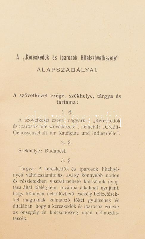 A kereskedők és iparosok hitelszövetkezete alapszabályai. Bp., 1905, p... https://www.darabanth.com/de/502-Fernauktion/502.0/Kunst-Dokumente-andere-Sammelgebiete/Drucksachen~3000109/A-kereskedok-es-iparosok-hitelszovetkezete-alapszabalyai-Bp-1905-papirkotes-jo-allapotban~II3412332