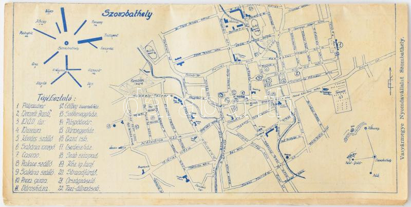 Beschreibung: Régi szombathelyi városi prospektus térképpel és reklámokkal