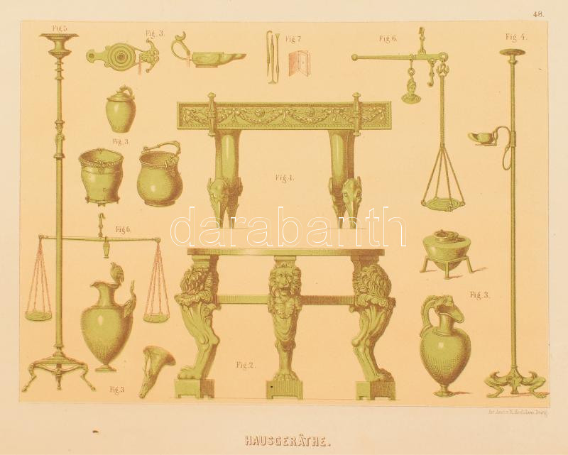 cca 1900 Ókori építészet témájú illusztrációk, 7 db (részben színes) képtábla, Stuttgart, Hoffmannsche Verlags-Buchhandlung, változó állapotban, részben foltos, 24x30 cm körül