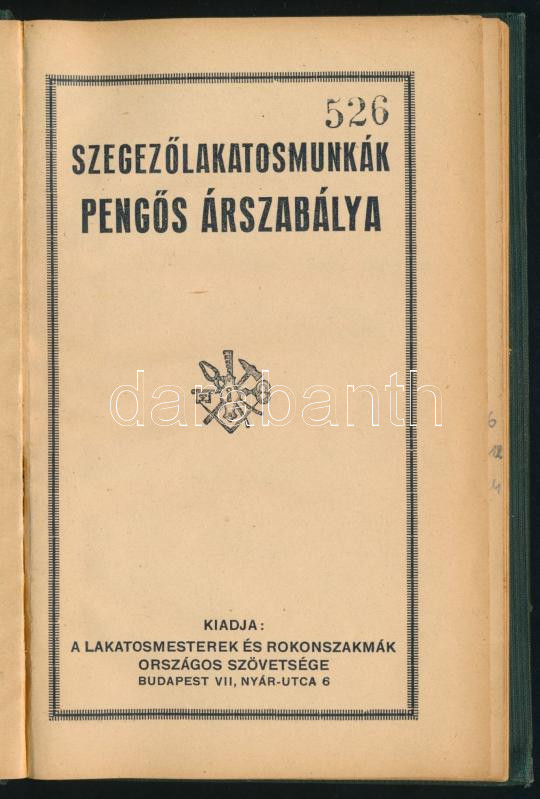 cca 1930 Szegezőlakatosmunkák pengős árszabálya, kiadja: Lakatosmester... https://www.darabanth.com/de/502-Fernauktion/502.0/Kunst-Dokumente-andere-Sammelgebiete/Drucksachen~3000109/cca-1930-Szegezolakatosmunkak-pengos-arszabalya-kiadja-Lakatosmesterek-es-Rokonszakmak-Orszagos~II3417947