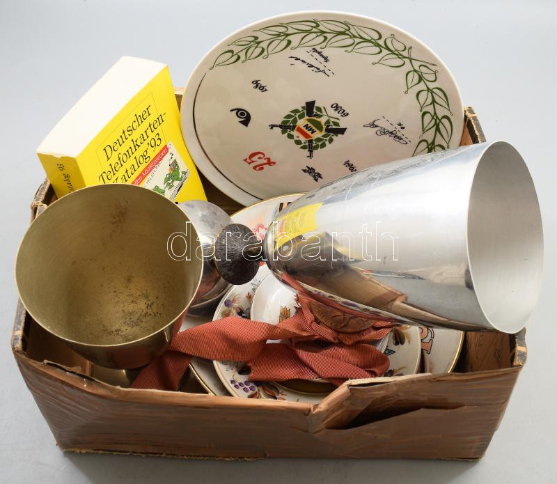 Beschreibung: Doboznyi vegyes bolha tétel, porcelánokkal, közte 1989 Magyar Néphadsereg dísztál d: 24,5 cm
