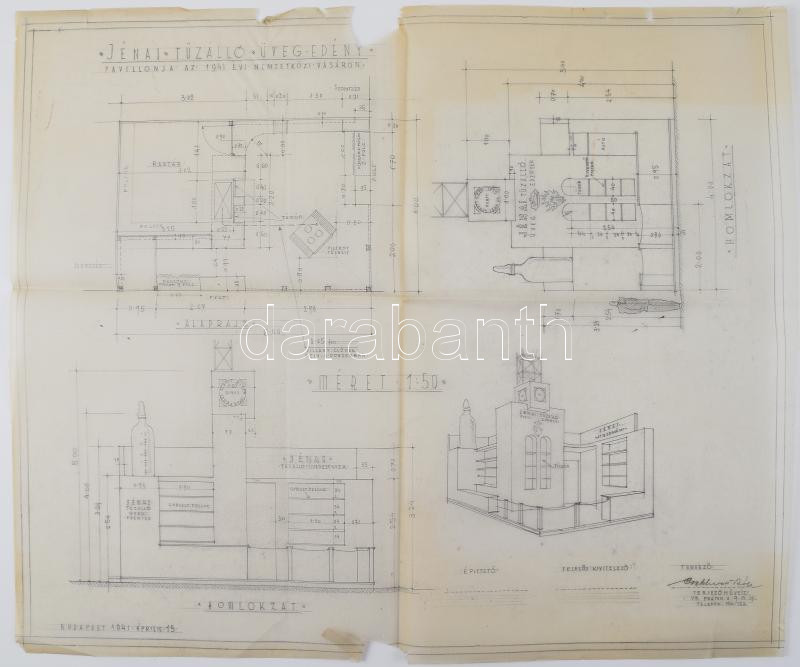 Gebhardt Béla (1901-1990): A Jénai tűzálló edény gyár 1941-es BNV pavi... https://www.darabanth.com/de/502-Fernauktion/502.0/Kunst-Dokumente-andere-Sammelgebiete/Historische-Dokumenten-Handschriften~3000100/Gebhardt-Bela-1901-1990-A-Jenai-tuzallo-edeny-gyar-1941-es-BNV-pavilonja-tervrajz-autograf~II3414789