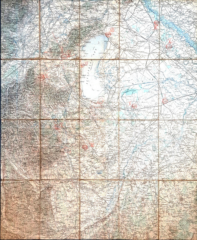 Jó állapotú térképlap, vászonra vonva, hajtogatva, hátoldalán kézi feliratozással.