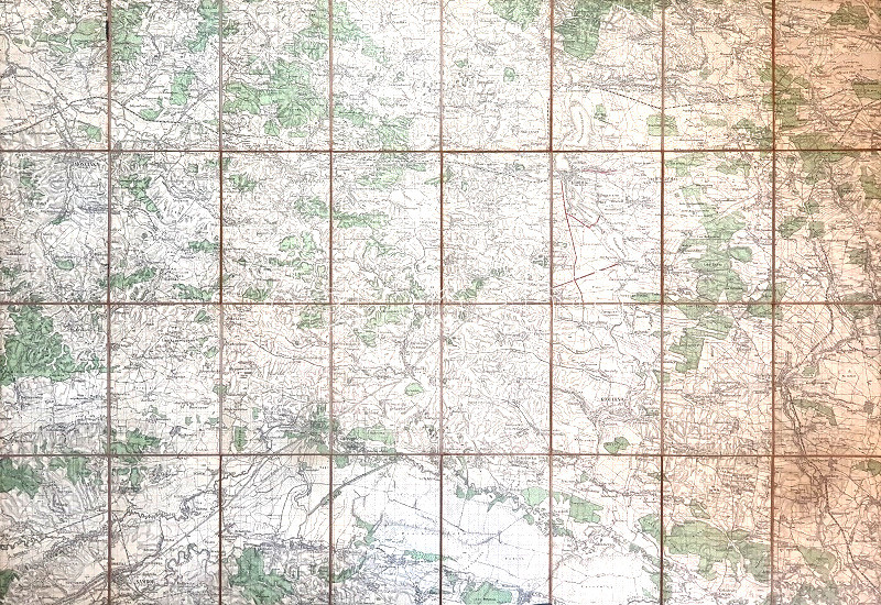 Jó állapotú térképlap, vászonra vonva, hajtogatva, hátoldalán kézi feliratozással.