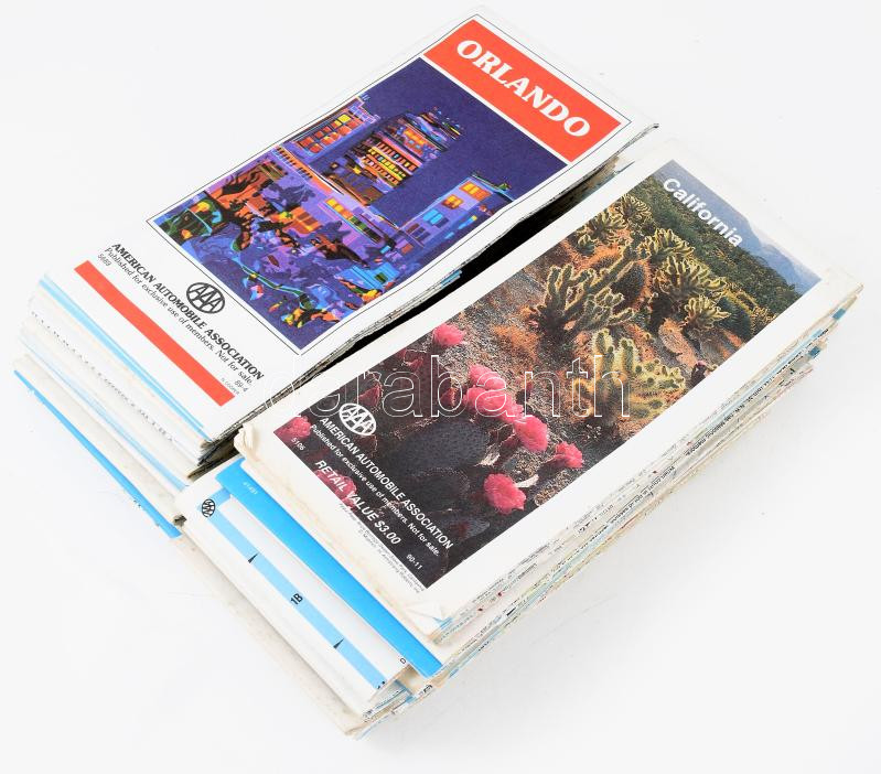 Vegyes amerikai (USA) térképek: California, Miami, New York City, Seattle, Hawaii, stb. + National Geographic Antarctica térkép, összesen 30 db, vegyes méretben és állapotban