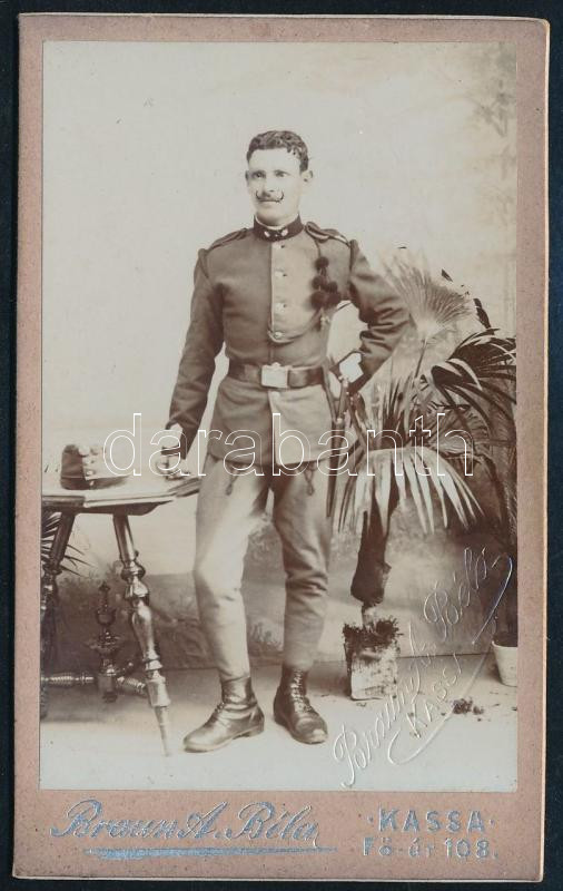 cca 1910 Katona egészalakos portréja, bajonettel és lövészbojttal, viz... https://www.darabanth.com/de/502-Fernauktion/502.0/Kunst-Dokumente-andere-Sammelgebiete/Militaria~3000106/cca-1910-Katona-egeszalakos-portreja-bajonettel-es-loveszbojttal-vizitkartya-Braun-A-Bela~II3412920