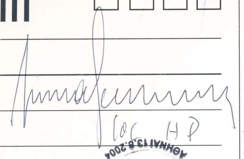 1994 Juan Antonio Samaranch (1920-2010) NOB elnök aláírása 2004 Athén ... https://www.darabanth.com/de/502-Fernauktion/502.0/Kunst-Dokumente-andere-Sammelgebiete/Signatur~2000004/1994-Juan-Antonio-Samaranch-1920-2010-NOB-elnok-alairasa-2004-Athen-olimpia-belyegzesu-lapon~II3413495