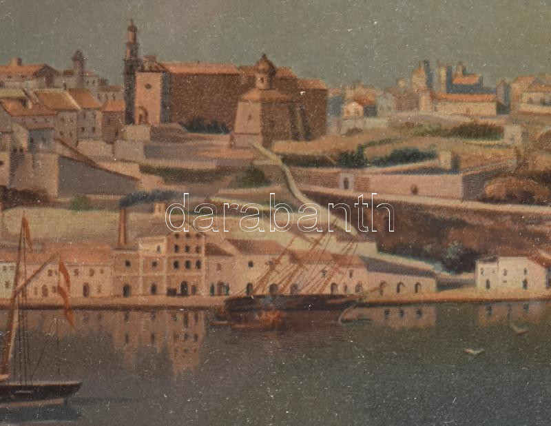Beschreibung: Mahon, Menorca.szigetén nagyméretű litografált látkép. Madrid, 1880 Font y Vidal, Joan 88x30 cm Paszpartuzva, üvegezett keretben