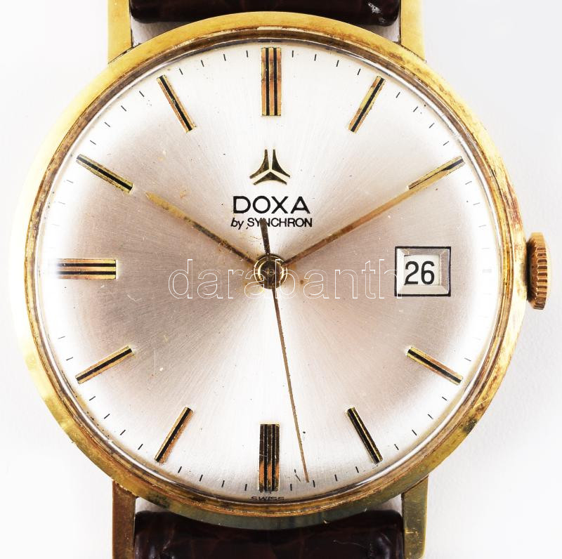 Doxa arany (Au) karóra, napkijelzéssel, 14k, jelzett, bőr szíjjal, hát... https://www.darabanth.com/de/502-Fernauktion/502.0/Kunst-Dokumente-andere-Sammelgebiete/Uhren~1500007/Doxa-arany-Au-karora-napkijelzessel-14k-jelzett-bor-szijjal-hatoldalan-MNK-BM-ajandekozasi~II3411567