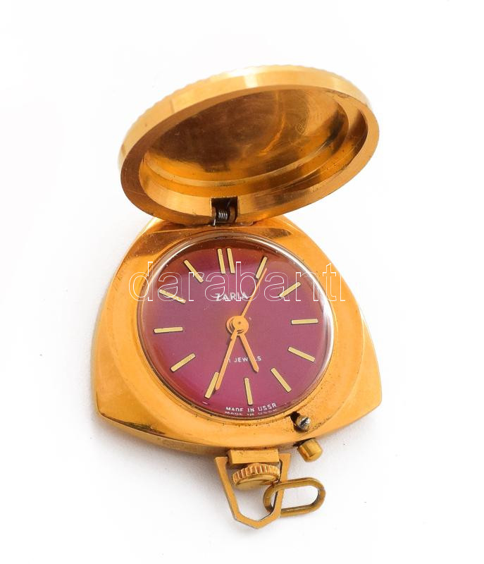 Zaria 21 köves medál óra lila üveg - kő borítással, működik, 3x3 cm https://www.darabanth.com/de/502-Fernauktion/502.0/Kunst-Dokumente-andere-Sammelgebiete/Uhren~1500007/Zaria-21-koves-medal-ora-lila-uveg-ko-boritassal-mukodik-3x3-cm~II3411988