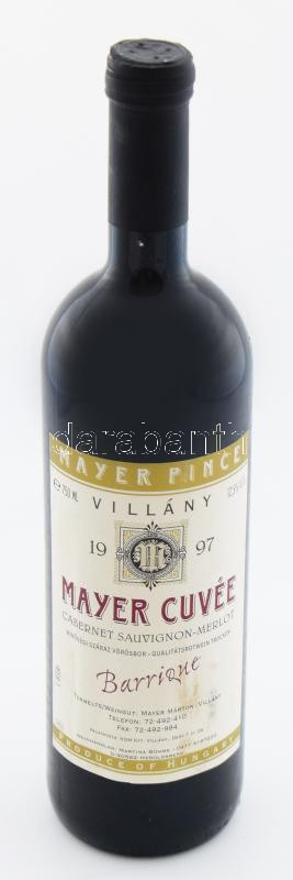 1997 Mayer Villányi Mayer Cuvée Cabernet Sauvignon - Merlot Barrique. ... https://www.darabanth.com/de/502-Fernauktion/502.0/Kunst-Dokumente-andere-Sammelgebiete/Vintage-Weine-Getranke~1500013/1997-Mayer-Villanyi-Mayer-Cuvee-Cabernet-Sauvignon-Merlot-Barrique-Pinceben-szakszeruen~II3415433