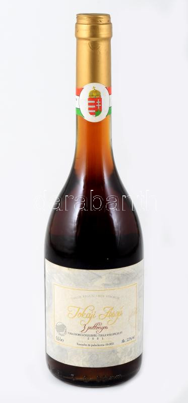 2001 Tokaji aszú, 12,5%, 0,5l, bontatlan. https://www.darabanth.com/de/502-Fernauktion/502.0/Kunst-Dokumente-andere-Sammelgebiete/Vintage-Weine-Getranke~1500013/2001-Tokaji-aszu-12-5-0-5l-bontatlan~II3415059