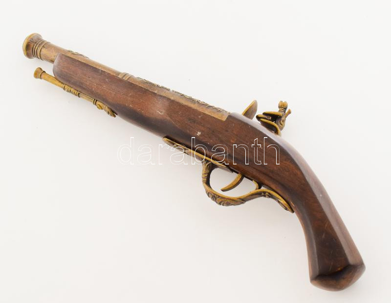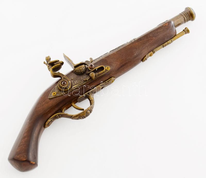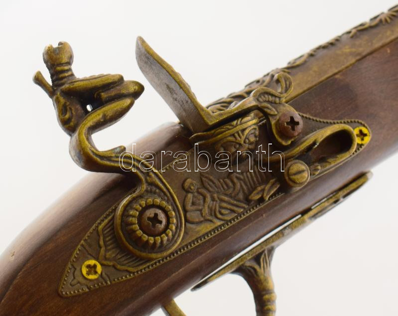 XVIII. századi kovás pisztoly replika, jó állapotban, h: 37 cm https://www.darabanth.com/de/502-Fernauktion/502.0/Kunst-Dokumente-andere-Sammelgebiete/Waffen-Messer~2000014/XVIII-szazadi-kovas-pisztoly-replika-jo-allapotban-h-37-cm~II3417573