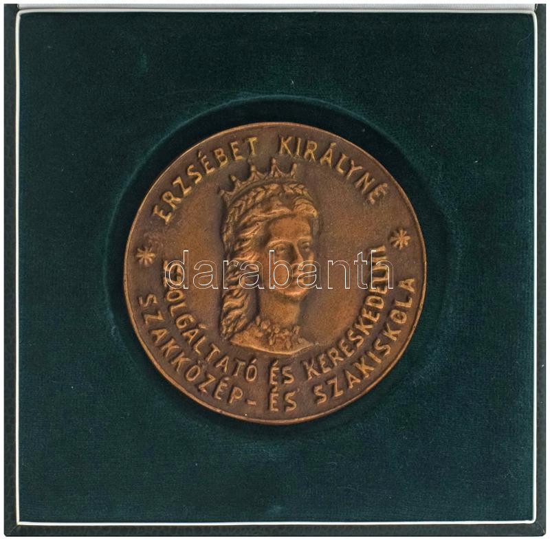 DN "Erzsébet királyné Szolgáltató és Kereskedelmi Szakközép- és Szakiskola" egyoldalas, öntött bronz emlékplakett, hátoldalán gravírozással, nem hozzá való tokban () T:AU