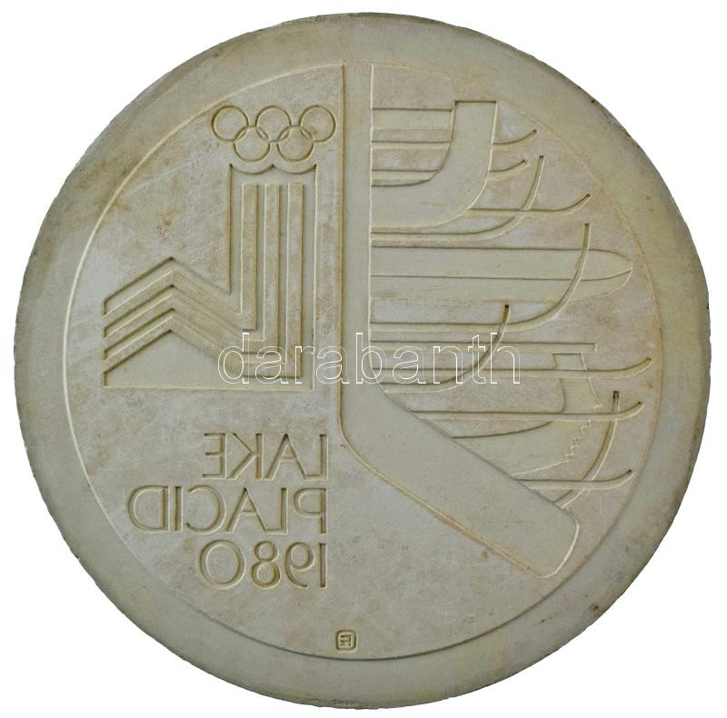 1980. 200Ft/500Ft "XIII. Téli Olimpia Lake Placid 1980" meg nem valósult érmetervezet gipsz hátlapi NEGATÍV nagyminta (158mm) T:AU,XF ph.