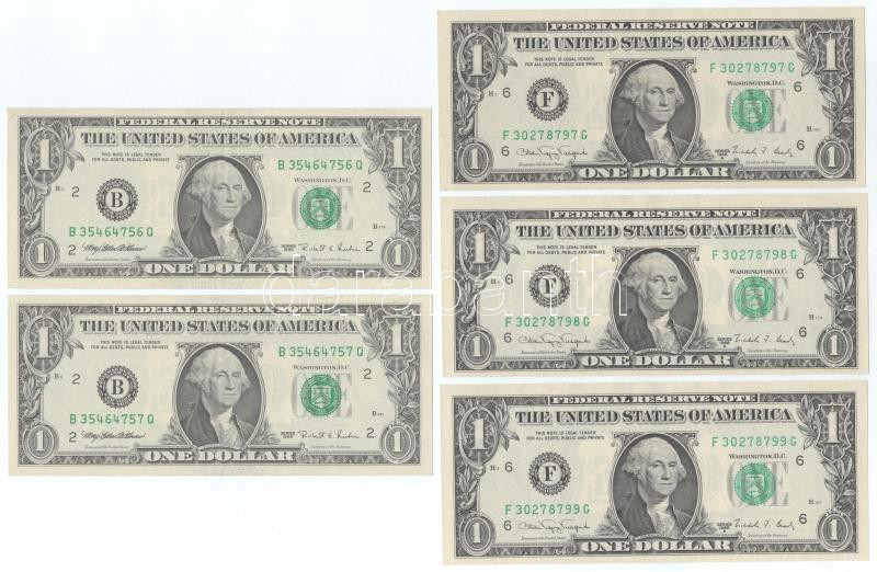 Amerikai Egyesült Államok 1989-1993 (1988A) 1$ "Catalina Vasquez Villalpando - Nicholas Frederick Brady" (3x) sorszámkövető + 1995-1999 (1995) 1$ "Mary Ellen Withrow - Robert Edward Rubin" (2x) sorszámkövető T:AU,XF