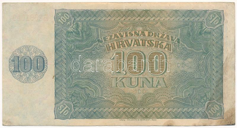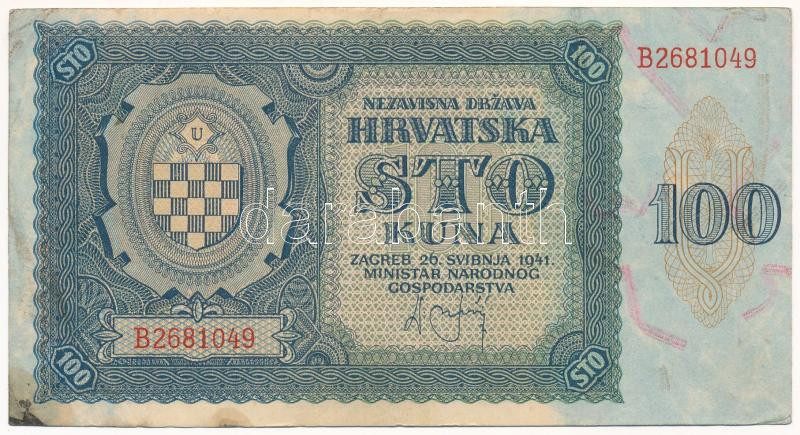 Cro... https://www.darabanth.com/de/502-Fernauktion/502.0/Numismatik/Weltweit-Banknoten~84/Horvatorszag-1941-100K-B2681049-T-F-folt-egyebkent-szep-papirCroatia-1941-100-Kuna-B2681049~II3418860