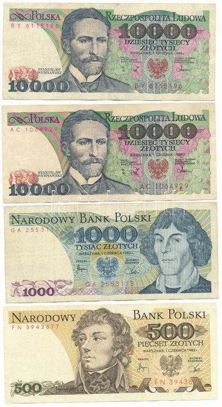 Lengyelország 1982. 500Zl + 1000Zl + 1988. 10.000Zl T:F,VG