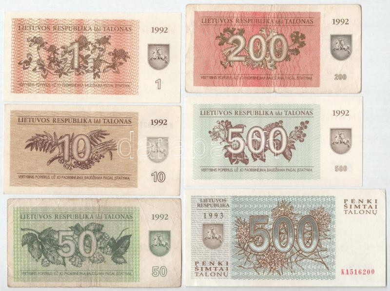 Lithuania 1992-1993. 1 Talonas - 500 Talonas (6xdiff) C:UNC-VG