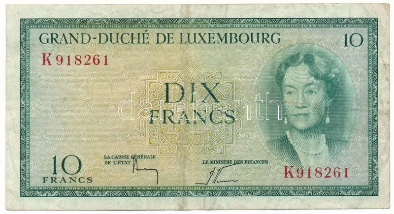 Luxembourg ND(1954) 10 Francs "Charlotte", "K 918261" C:F