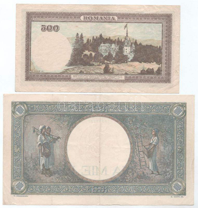 Románia 1941. 500L "F/6 0453580" + 1000L "M.0730 0689" T:F, kis szakadások