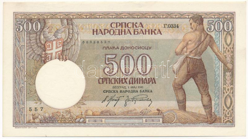 Serbia / German occupation 1942. 500 Dinara "G.0334 557" C:XF