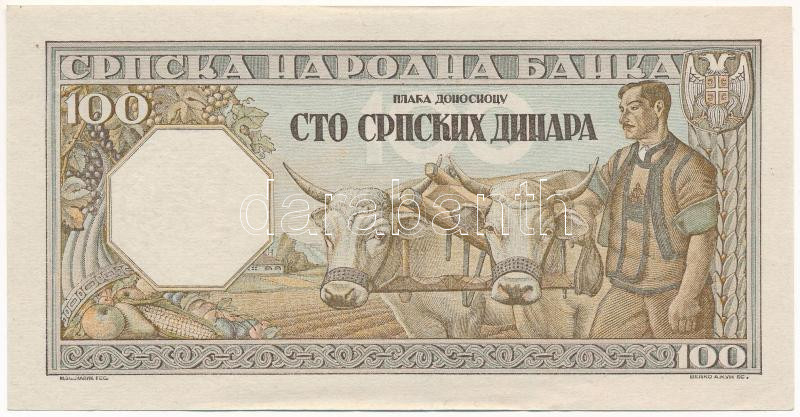 Serbia / Germ... https://www.darabanth.com/de/502-Fernauktion/502.0/Numismatik/Weltweit-Banknoten~84/Szerbia-Nemet-megszallas-1943-100D-P0489-248-T-AUSerbia-German-occupation-1943-100-Dinara~II3418812