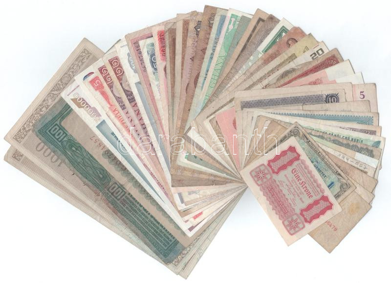 Mixed, 46pcs foreign banknote lot, within Austria / Allied occupation 1944. 1 Schilling + 2 Schilling + 5 Schilling + German Third Reich 1942. 5 Reichsmark (2x) + Allied occupation 1944. 1 Mark + Czechoslovakia 1987. 50 Korun + 1988. 20 Korun C:mixed