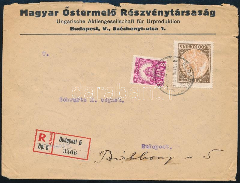 Beschreibung: 1926 Ajánlott Budapest helyi levél Koronás Madonna 2.500K és Pengő-fillér 8f vegyes bérmentesítéssel