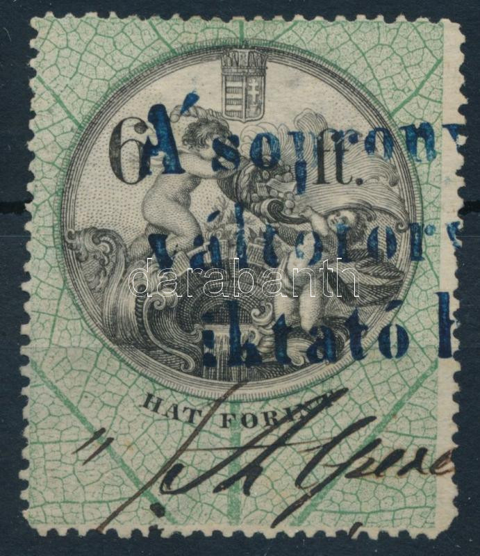 Beschreibung: 1870 Okmánybélyeg 6Ft (40.000)