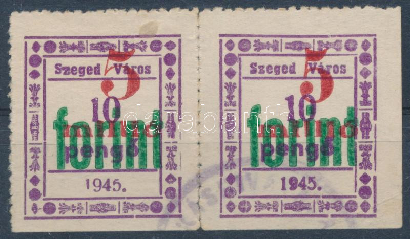 1945 Szeged 5Ft/10P illetékbélyeg párban https://www.darabanth.com/de/502-Fernauktion/502.0/Philatelie-und-Postgeschichte-Ungarn/Stempelmarken~1500015/1945-Szeged-5Ft10P-illetekbelyeg-parban~II3414142